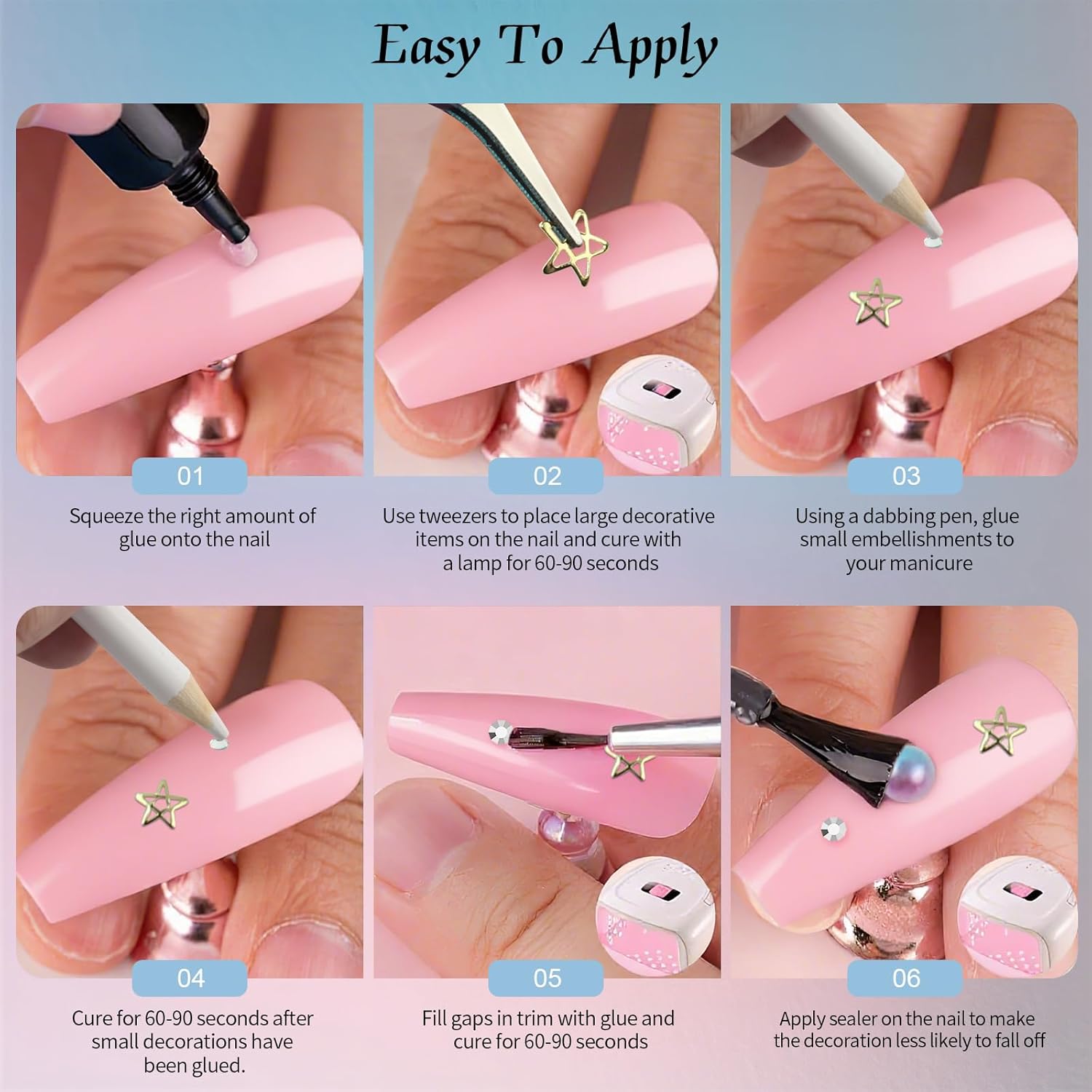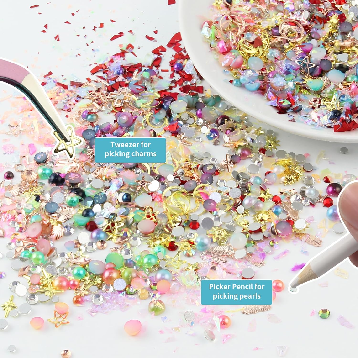 • Easy to Use for All Skill Levels: Whether you’re a beginner or a pro, this kit simplifies nail art! Use the included tweezers to pick up tiny gems/charms, then apply with nail glue (or top coat for stickers). The stickers can be directly pressed onto nails and trimmed as needed. No complex tools requiredβ€”create salon - like nail art at home in minutes.