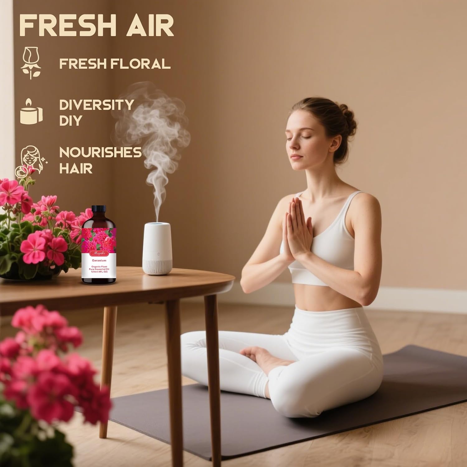 Geranium Essential Oil-Geranium Fragrance Oil 4.33oz (130ml)-100% Pure Natural Scent for Diffusers, Candles, Soap Making & Aromatherapy-Relaxing Home & Gift Essential Oil for Bath, Massage