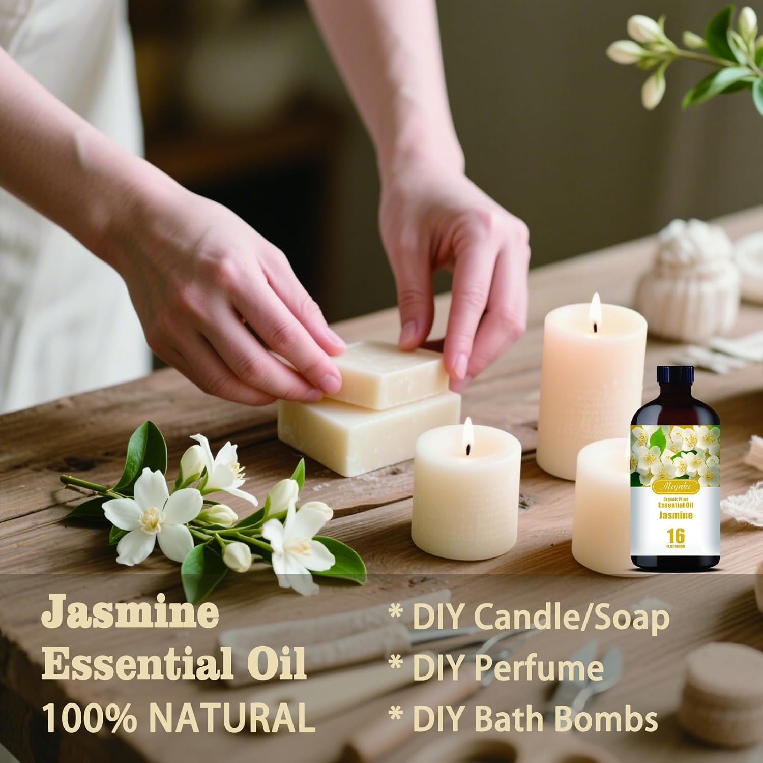 • * You can use multi-purpose essential oils - Jasmine essential oil is suitable for aromatherapy machines and has many other uses. Use it for aromatherapy machines, humidifiers, home fragrance, spa, cleaning, massage, yoga, DIY candles, DIY soaps, perfume, car fragrance, bath balls, etc.