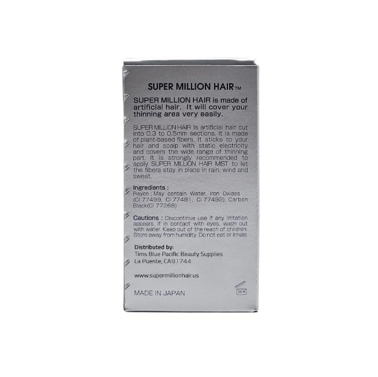 • MADE IN JAPAN- TRUSTED QUALITY SINCE 1986 - Crafted with premium ingredients and decades of expertise, trusted by professionals and individuals worldwide. Super Million Hair, trusted global brand, is the original fiber hair concealer made in Japan.
