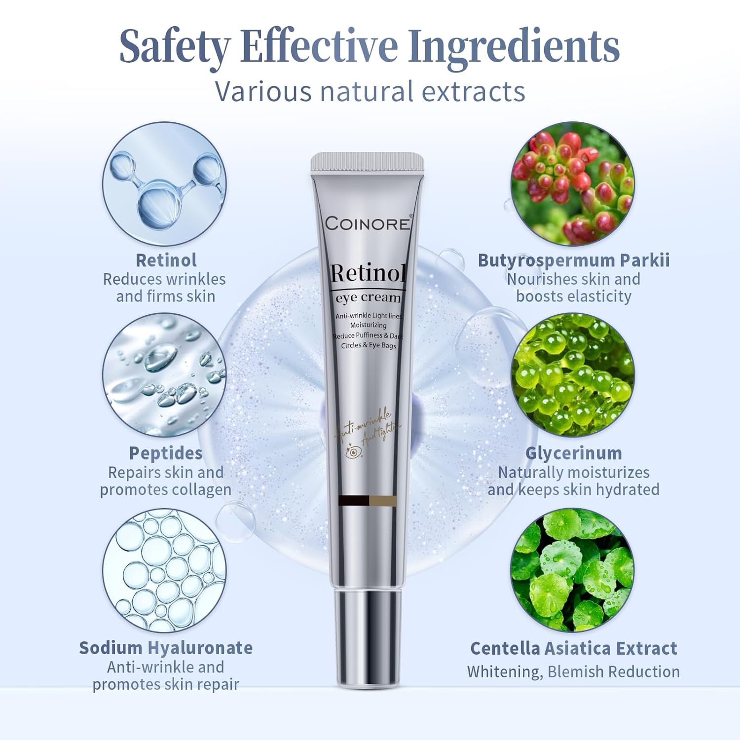 Retinol Under Eye Cream - Cream for Men & Women, Dark Circles, Puffiness & Wrinkles, Anti-Aging Eye Cream for Fine Lines, 0.7 Fl Oz