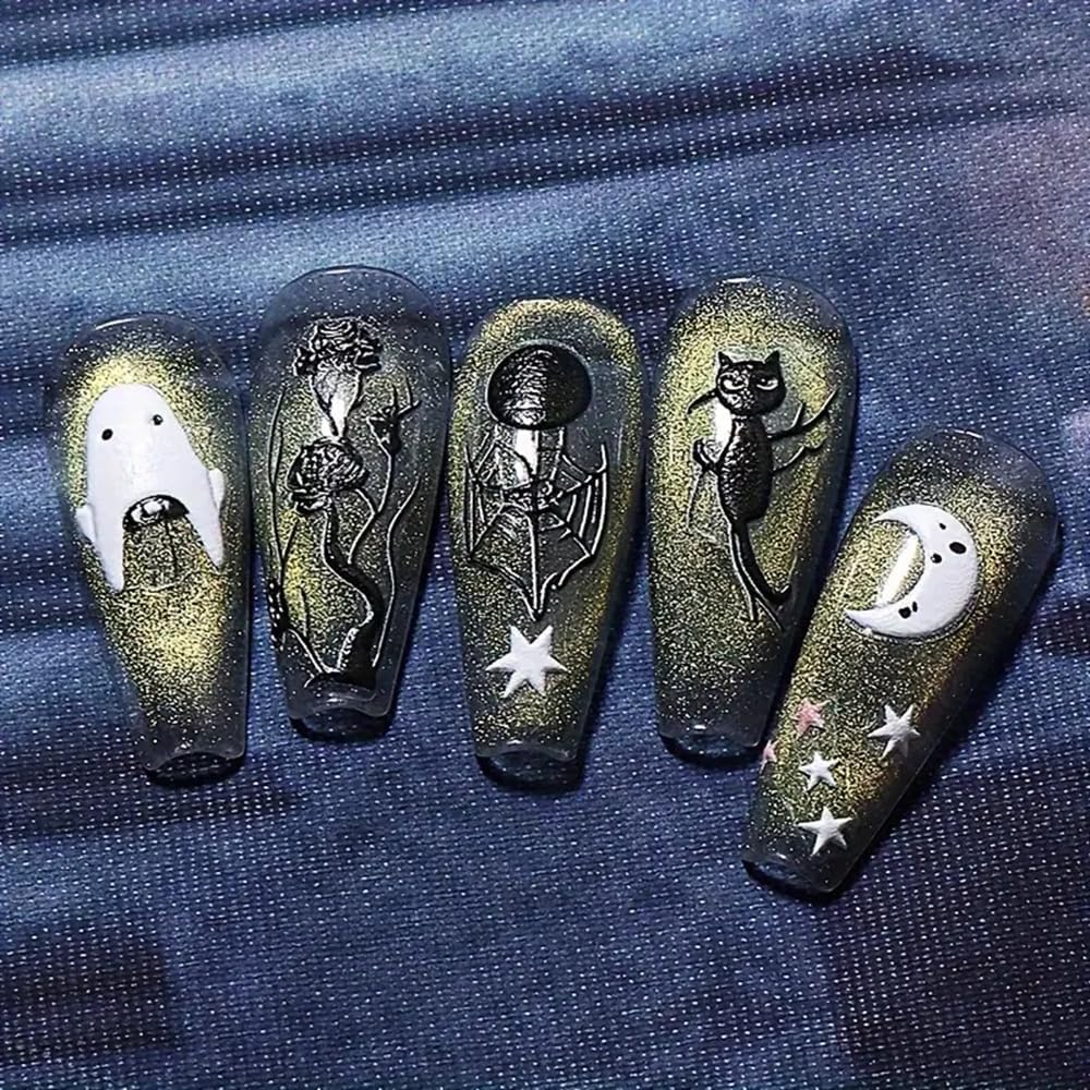 • [Halloween Nail Designs] Halloween nail art stickers have different patterns such as ghost, crow,rose, cat,bat,skull,spider, star, moon etc. which can provide you with a variety of choices and let you use your rich imagination to nail DIY. At affordable prices, suitable for girls women fashion styles.