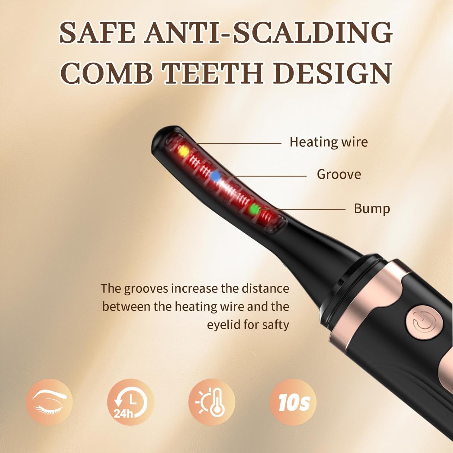 • 【3S FAST HEATING & LONG-LASTING CURL】The Heated Eyelash Curlers Can Fast Heat Up Within 10s And The Curved Curling Head Quickly Creates A Perfect, Natural Curl For Your Eyes. Lasts Up To 24 Hours. This Eyelash Curler Comes With A Professionally Designed Curved Brush Head. When Used With Mascara, It Helps You Curl Your Lashes Quickly And Easily For A Natural And Long-Lasting Eye Makeup Effect That Enhances Your Eyes' Depth And Natural Appeal.