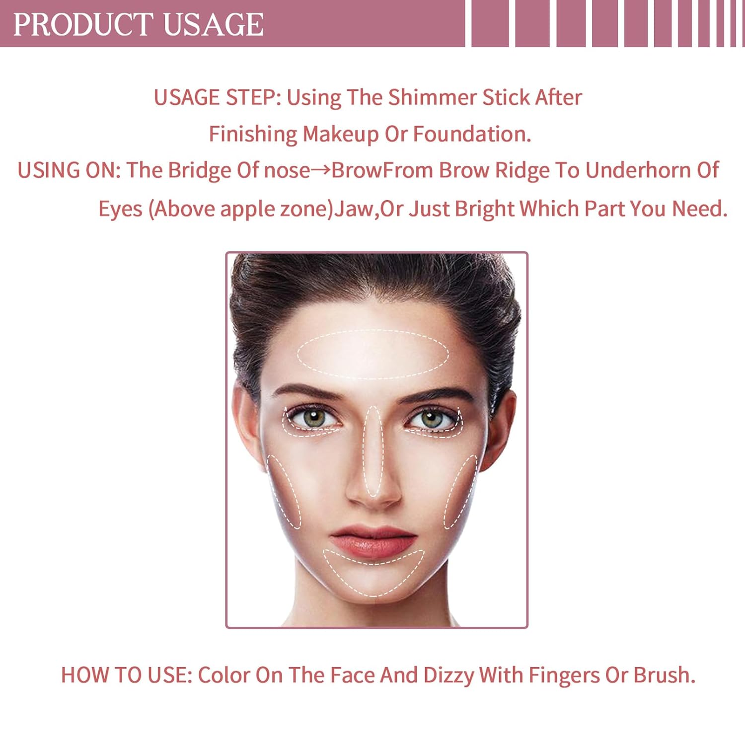 • Multi-Use Highlighter Makeup Stick: This is not only a glitter highlighter makeup stick for face contour improvement, but also can be used as blush and eye highlight to make your skin look moist, light and elegant. With just a highlighter stick, you can easily get your entire face and body makeup done.
