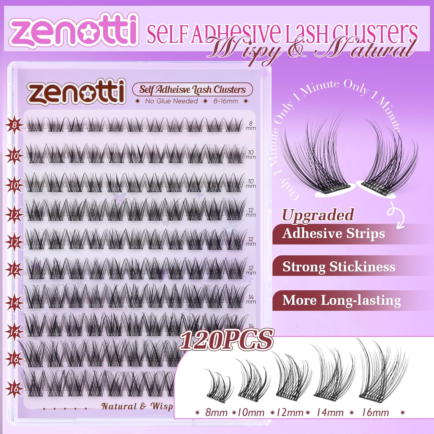 • 【Comfort That Lasts: Upgraded Version for All - Day Wear】Made from soft materials, zenotti self adhesive cluster eyelashes feel like a second skin. Our no glue lashes apply mild formula and upgraded self adhesive strips, that provide a long-lasting hold, so you can enjoy comfort from morning to night with our pre-glued lash clusters .