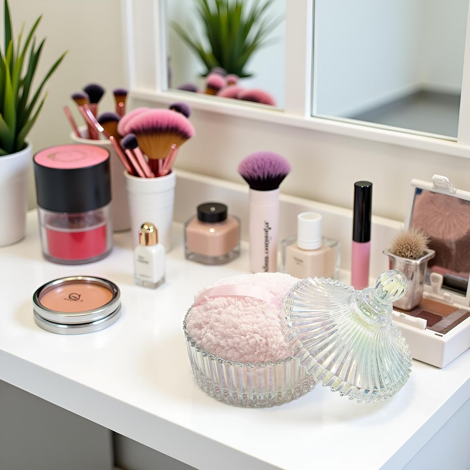 • 【You Will Get】 1 x Glass Powder Puff Box with Reusable One Pink Puff, both aesthetics and ritual, suitable for gifts or makeup table decorations. The puff is soft and reusable, wet and dry use