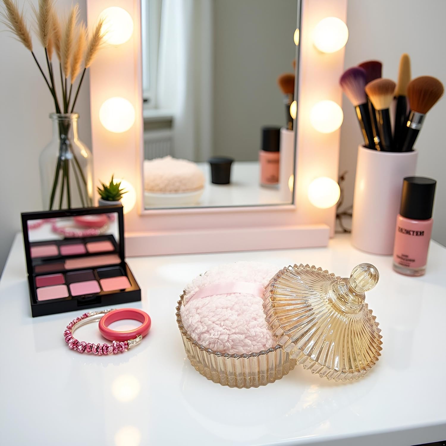• 【Durable & Easy to Clean】 This glass powder puff container is made of high quality glass material, beautiful and durable. This product is not a sealed jar, which is easy to clean and take care of daily, it doesn't take up too much space, but can store your daily trinkets and keep your items organized