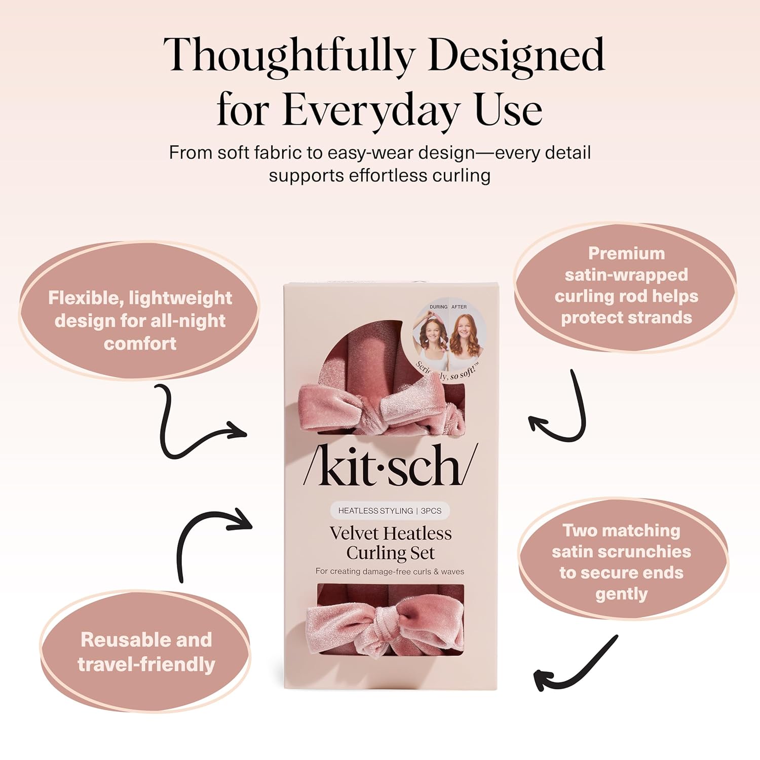 Kitsch Velvet Heatless Curling Set – Hair Curler to Sleep In for Heatless Curls Overnight - Heatless Hair Curler for Women – No Heat Damage Hair Styling Tool with 2 Velvet Scrunchies – Terracotta