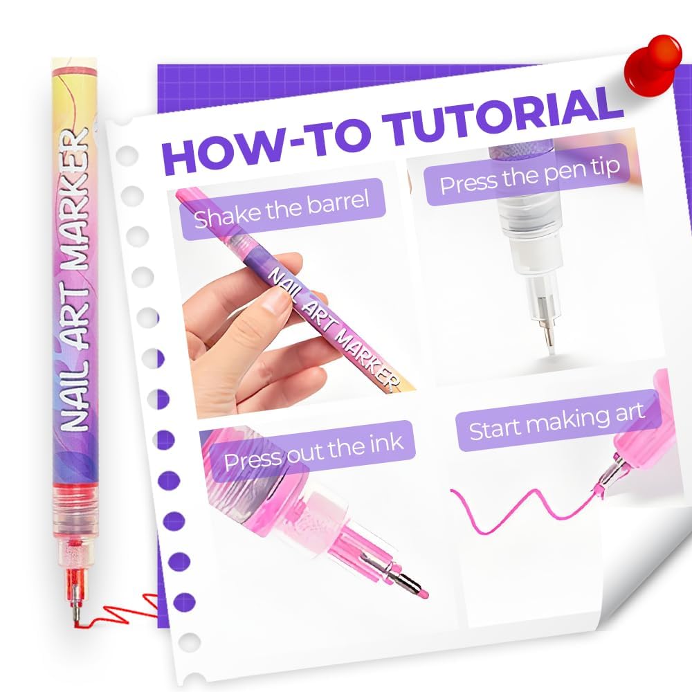 • 【Easy DIY Nail Patterns】These nail markers for nail art are ideal for creating intricate patterns at home. Achieve everything from simple dots and stripes to detailed designs like flowers and animals with the nail polish markers set for beginners and nail art enthusiasts.