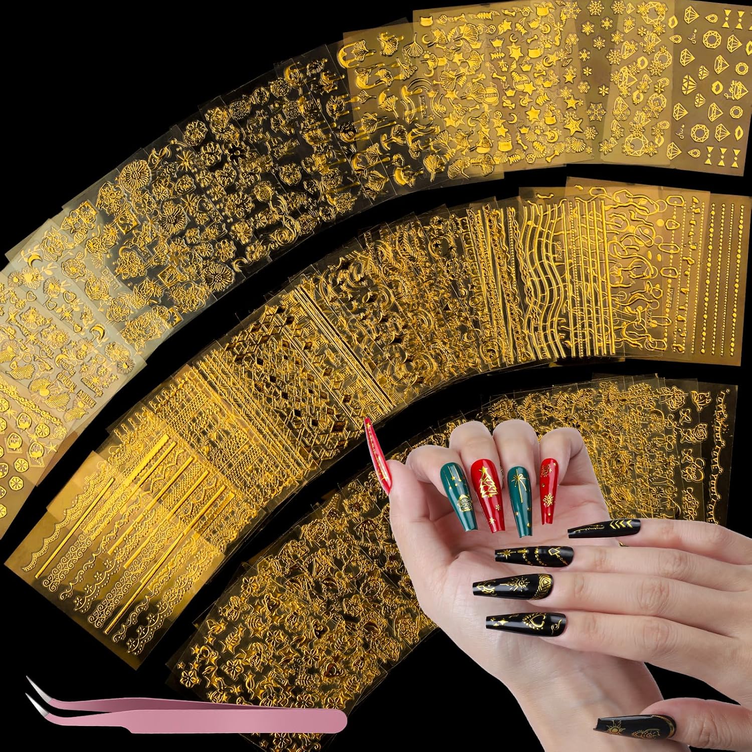 • 50 Sheets Gold Nail Art Stickers for All Season Especially in Fall Winter: There are 50 sheets gold nail stickers for nail art, full gold design is suitable for fall and winter, especially in Christmas, this set contains most popular elements like line, lace, various floral & plants stickers, star & moon, cross, bowknot and even Christmas & Halloween Styles to cater your creative ideas for nail art design and DIY scrapbooking