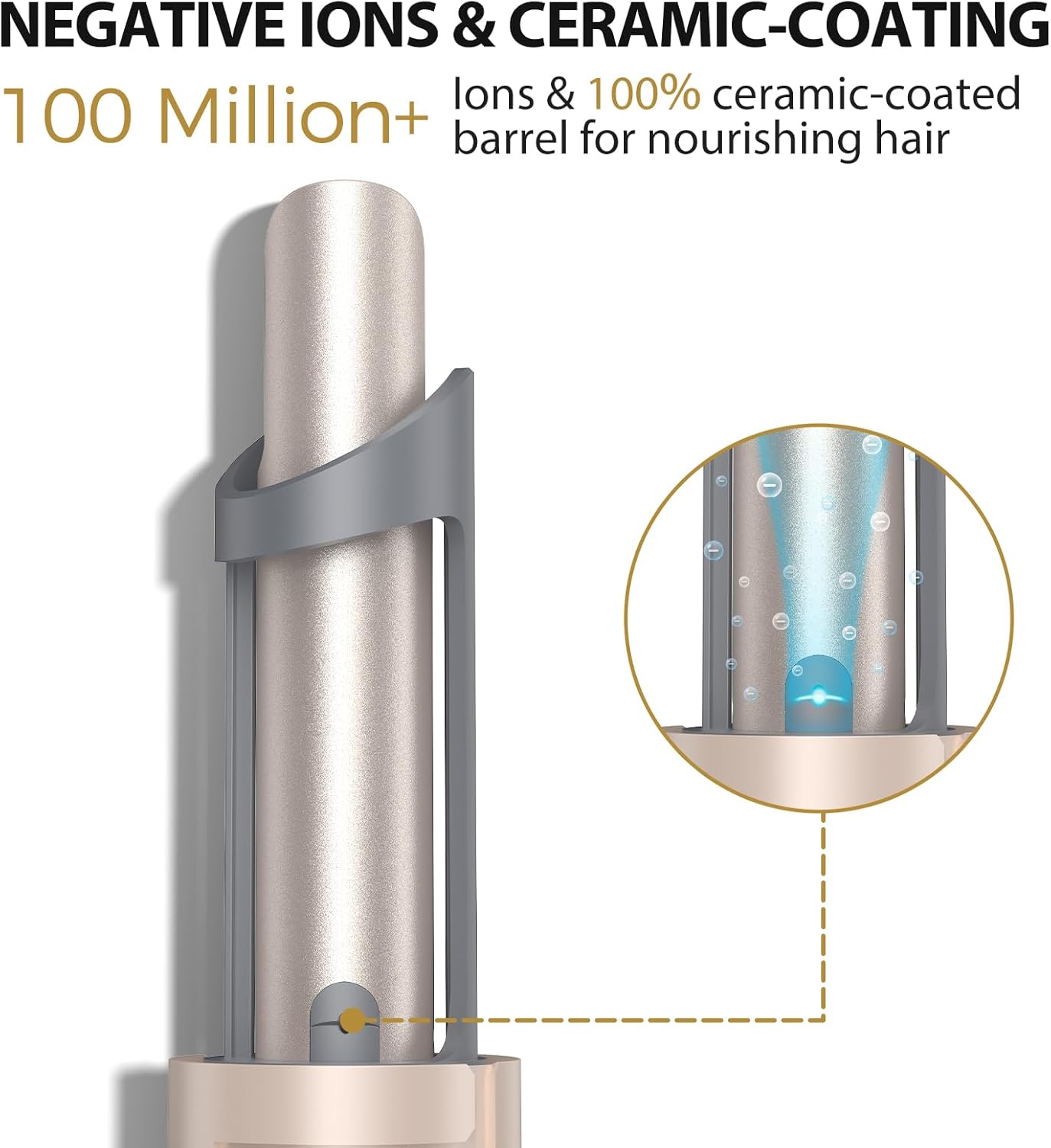 • 100M NEGATIVE IONS & 100% CERAMIC COATING: Achieve salon-perfect curls without damaging your hair! This rotating curling iron releases over 100 million negative ions that continuously nourish the hair roots, and the 100% ceramic barrel prevents heat damage, leaving your hair silky smooth and creating gorgeous, defined curls!