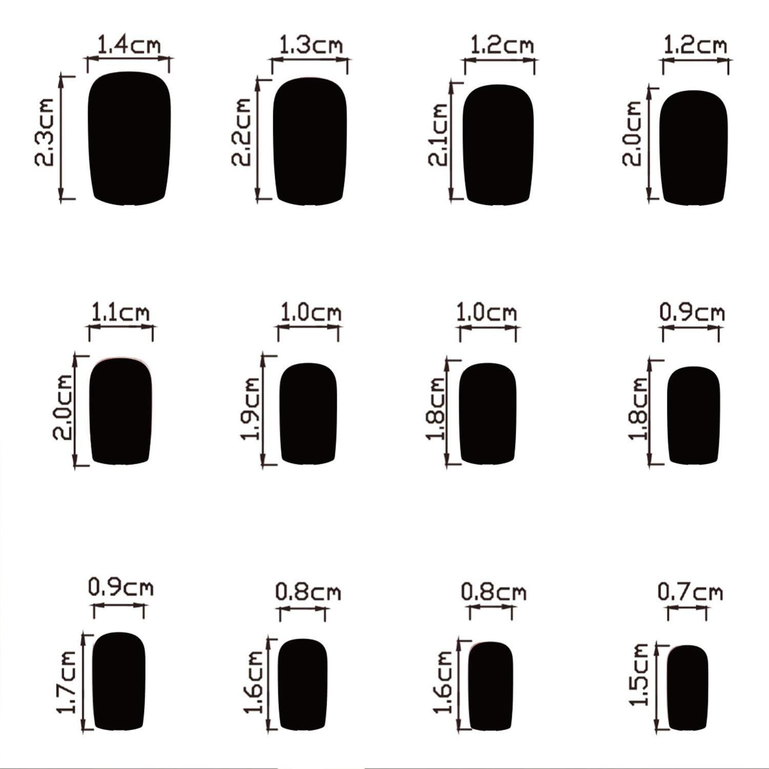 • Package: You'll get 24 fall maple leaf fake nails in 12 sizes. 1 mini nail file, 1 small wooden stick, 1 piece of adhesive tab glue. You can safely choose a fake nail that fits your finger size and DIY your desired nail shape