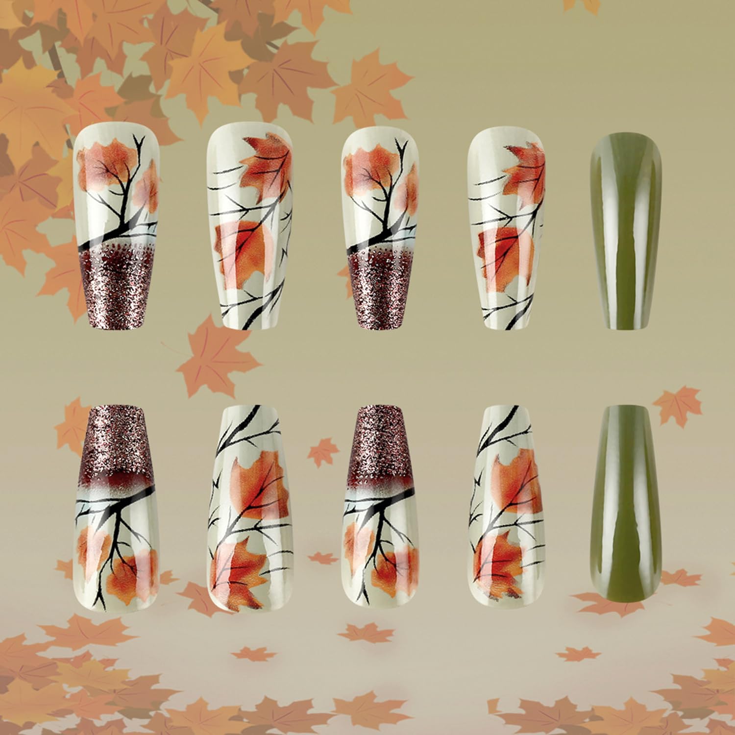 • Easy to Use: Instead of spend lots time and money at nail salon, you can change you nails style in 15 minutes anytime and anywhere. The maple leaves fake nails will stay longer if you clean your nails before use, and avoid water within the first hour of wearing