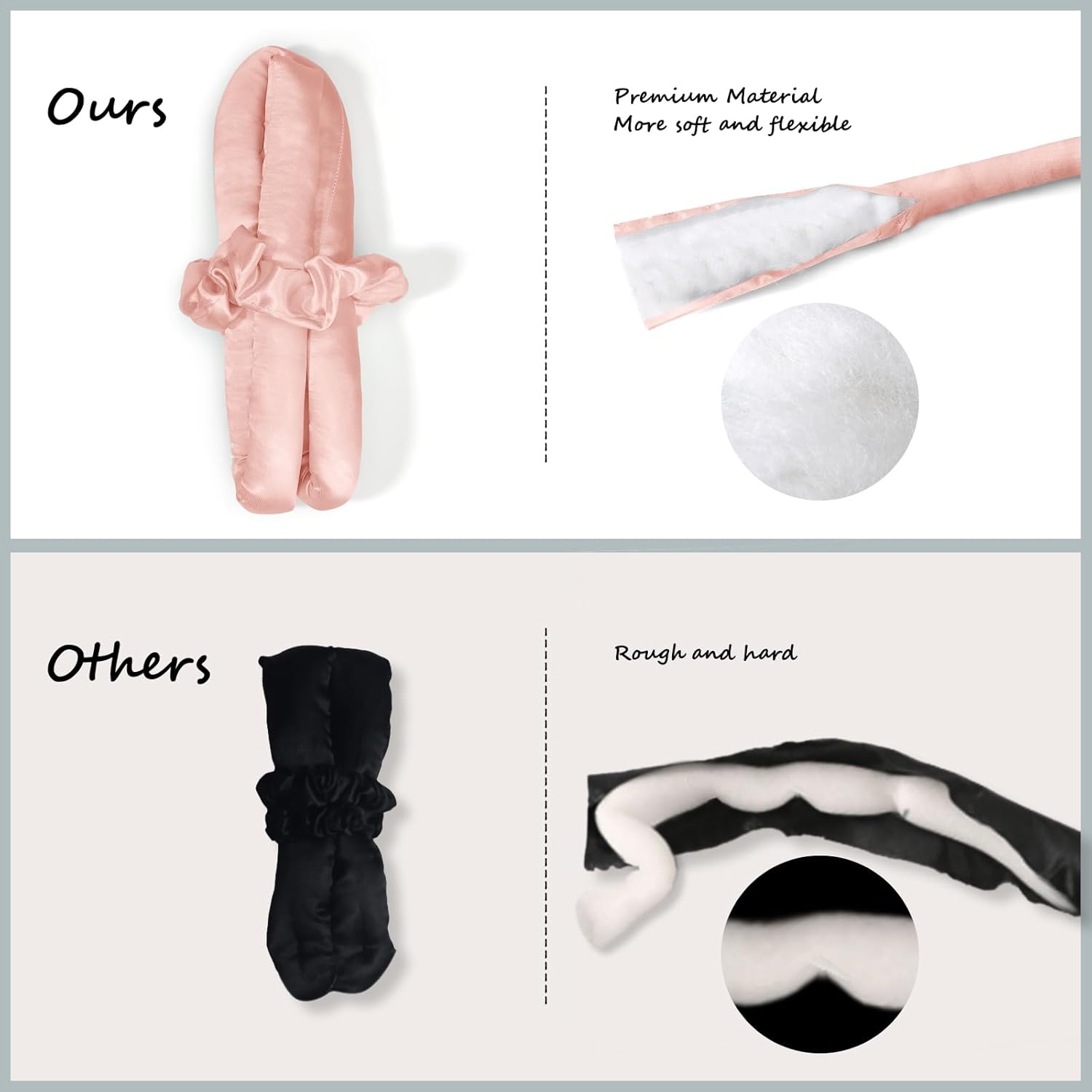 • 【Upgrade Satin Heatless Curler Band】 Upgraded curting headband is made of satin material outside and soft cotton fiber material inside; which is softer, and more comfortable to sleep in than the other versions. Our no-heat curler helps you hold the hair finalized and healthy easily.