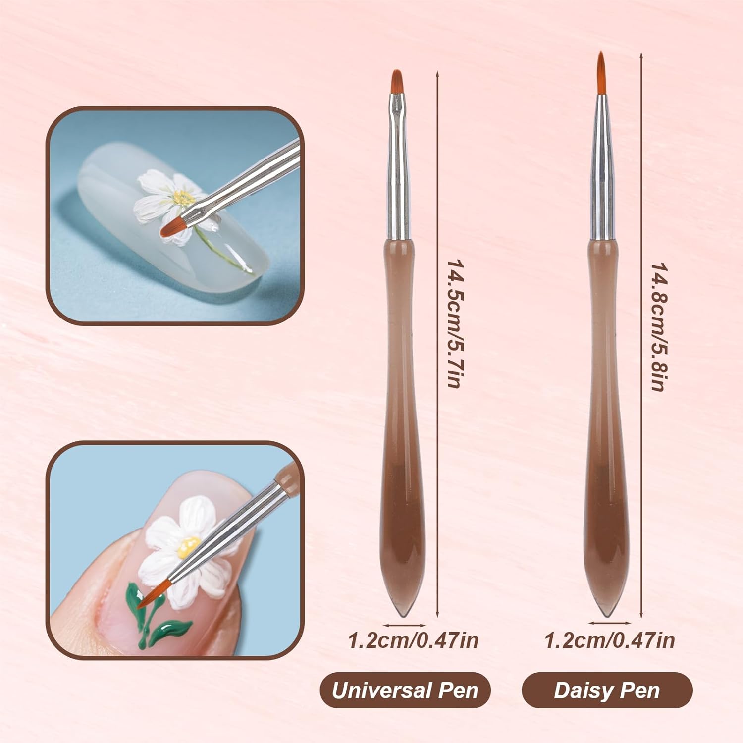 • Package Includes: You will receive 2 professional nail design brushes, perfect for detailed work such as creating flowers, leaves, petals, and other intricate designs.
