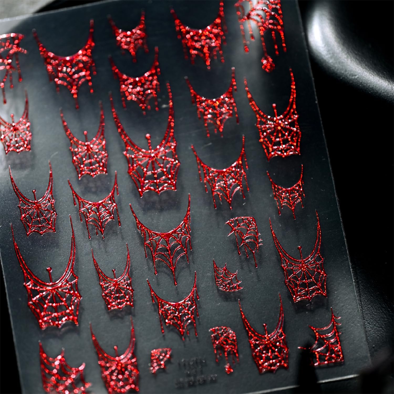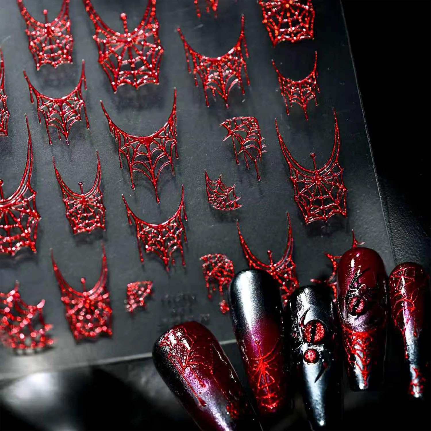 • Self-Adhesive Design: 5D self-adhesive red spider web nail decals for nail art design is simple and quick to use, Halloween nail art decals work great on bare nails, they will stay on for a long time and will not peel off your nails, enjoy the feeling of nail art