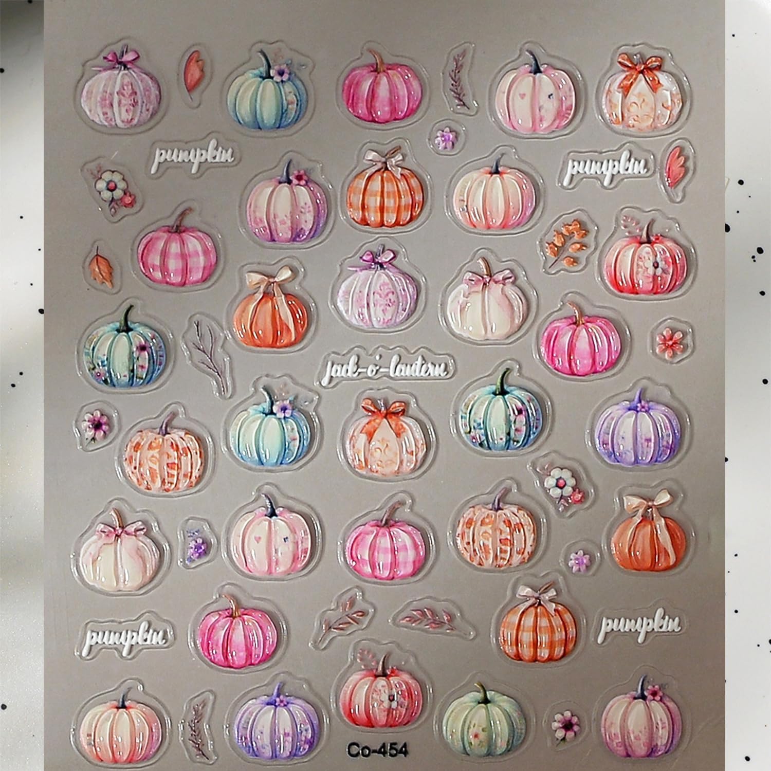 1 Sheets Colorful Pumpkin Nail Stickers for Nail Art 5D Self-Adhesive Embossed Fall Nail Art Stickers Thanksgiving Nail Decals Autumn Leaves Nail Design Sticker for Women Manicure DIY
