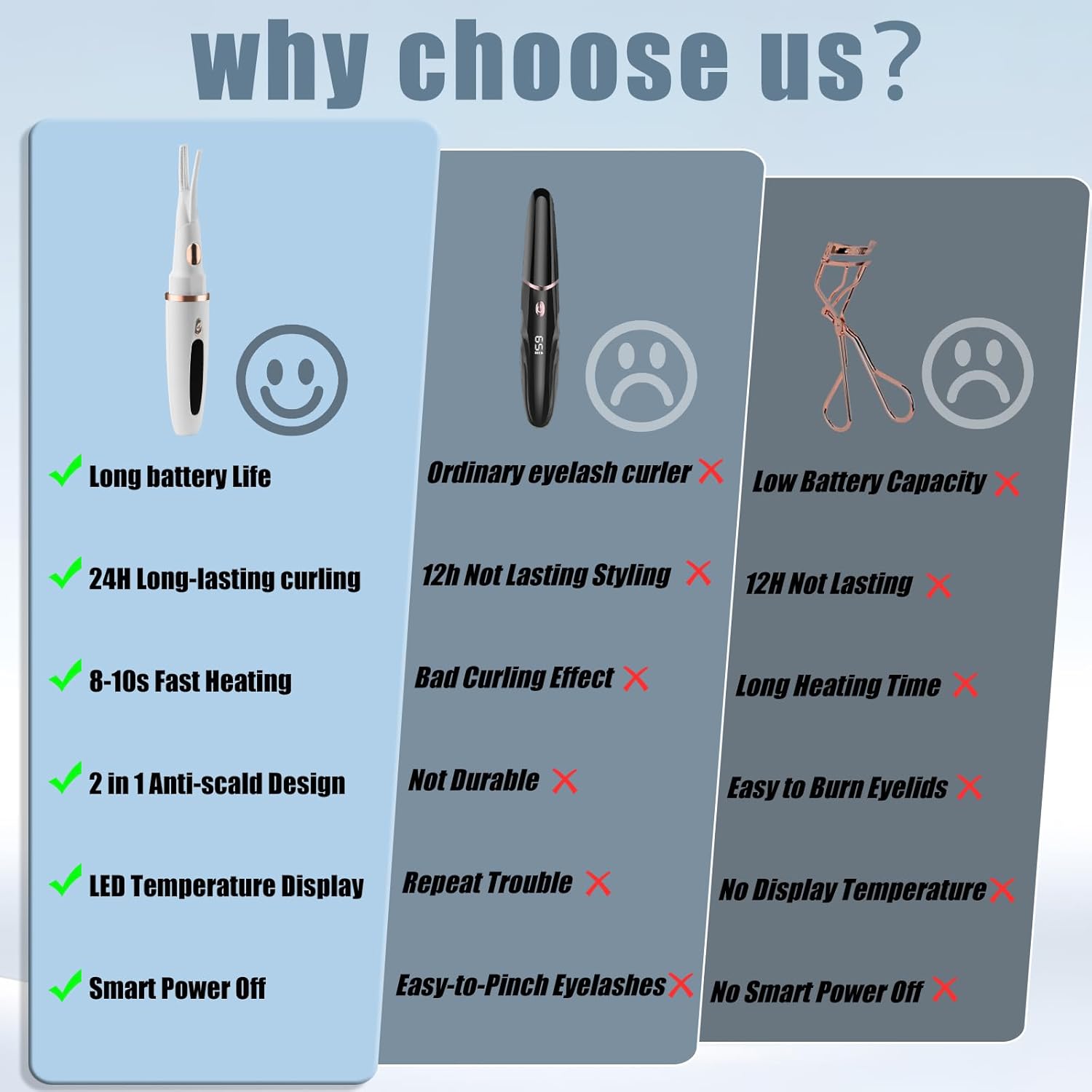 • Quick Natural Curling - The heated eyelash curler can fast heat up within 10s, creating a perfect natural curling eye makeup quickly without crimping or pinching. Lasting for 24 hours