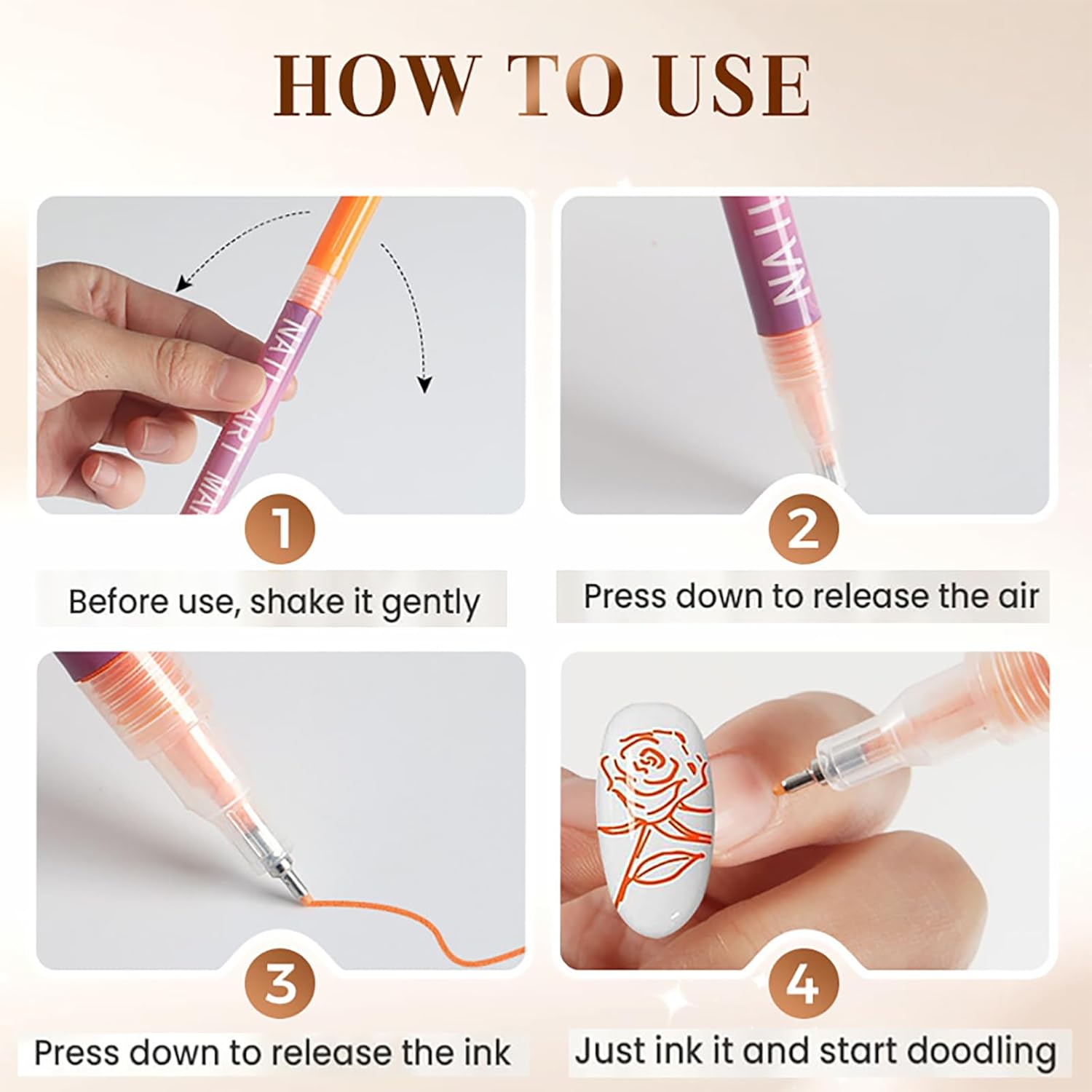 • Easy Artistic Application: Designed for smooth, effortless painting, these nail art pens allow you to create detailed designs with precision. The fine tips and even paint flow make it easy to use these nail doodle pens for intricate accents, ensuring your nails stand out whether at home or in a professional setting.