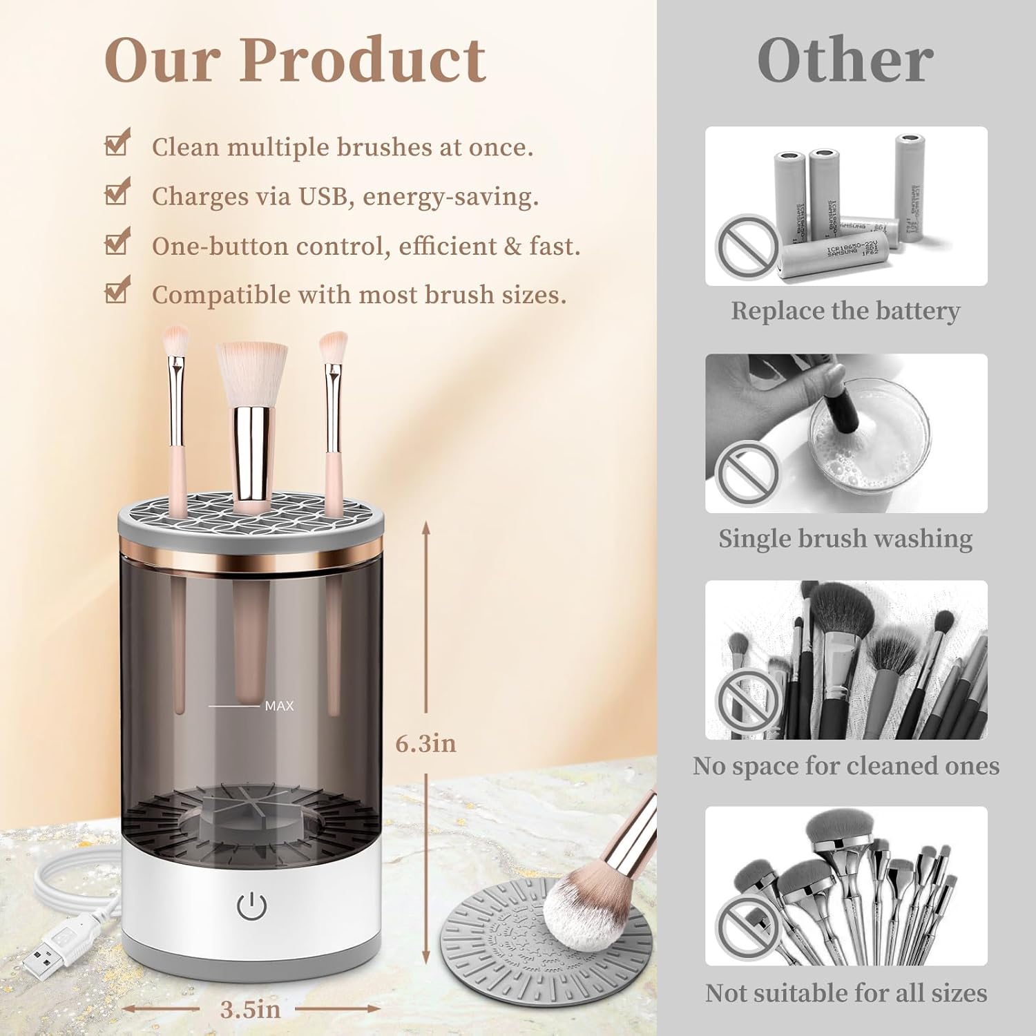 • Efficient and Quick Cleaning: Our makeup brush cleaner utilizes advanced cleaning technology to thoroughly clean a wide range of brushes in a short time, saving you both time and effort, and leaving your brushes looking brand new.