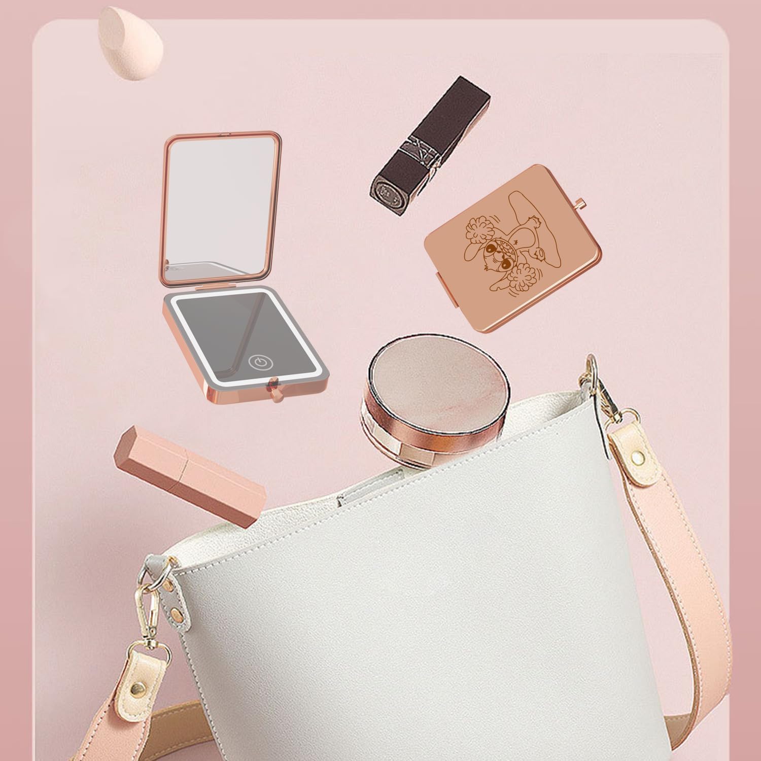 - 【Portable Design】: Compact handheld makeup mini mirror fits easily into your pocket, purse, handbag or makeup bag. Use it anytime, anywhere,travel essentials.