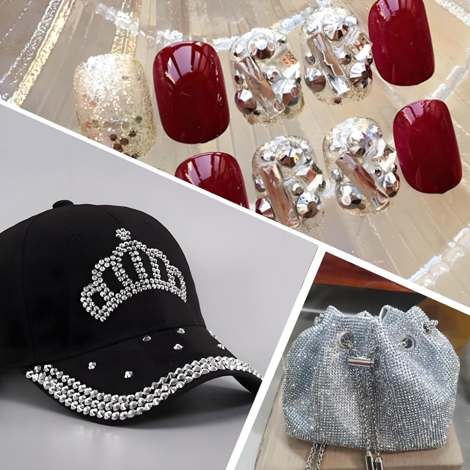 • ** Diamond-Cut Brilliance | Lasting Shine ** Made of high-refraction glass with 12-facet precision cutting for maximum sparkle,and durable silver backing for long-lasting adhesion. Resistant to fading, tarnishing, and daily wear.Much shinning than acrylic or resin rhinestones.